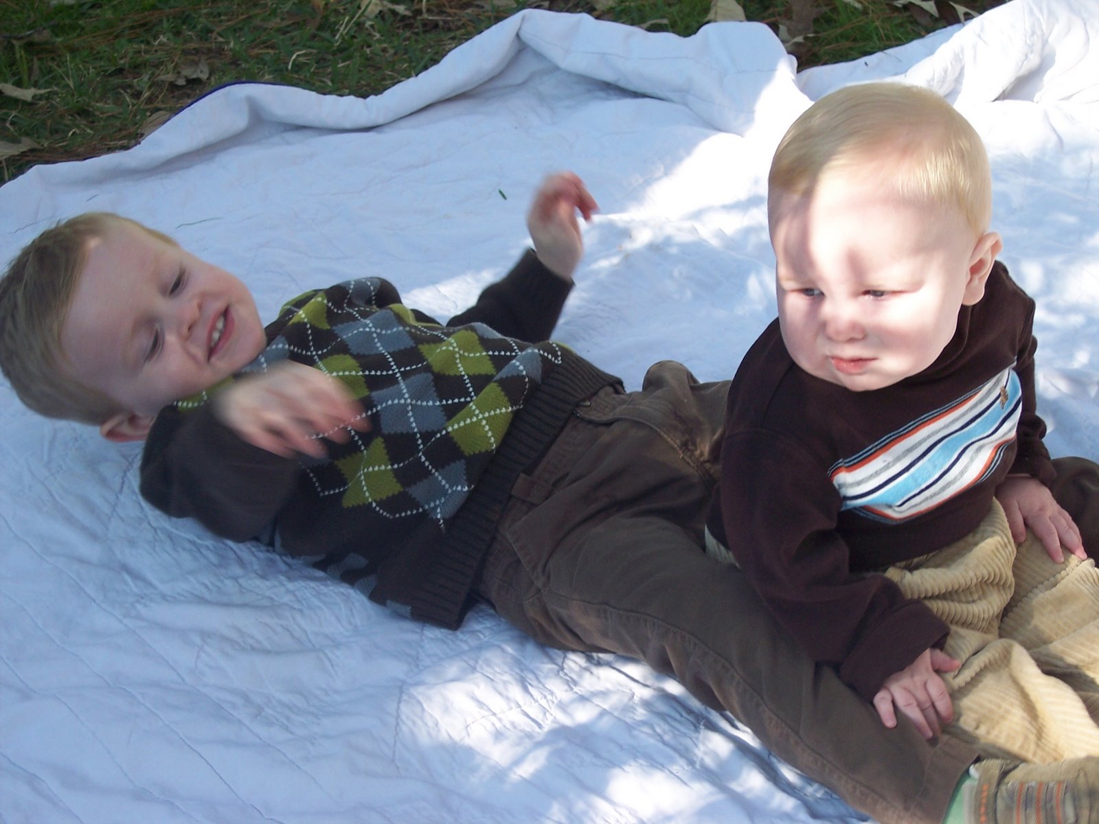 I don't know why, but I just love these pictures! I know Wyatt is totally upset in all of them, but I just think they are too adorable. We took these Thanksgiving day trying to get some nice pictures of the boys for Christmas cards - I guess we'll have to try again!